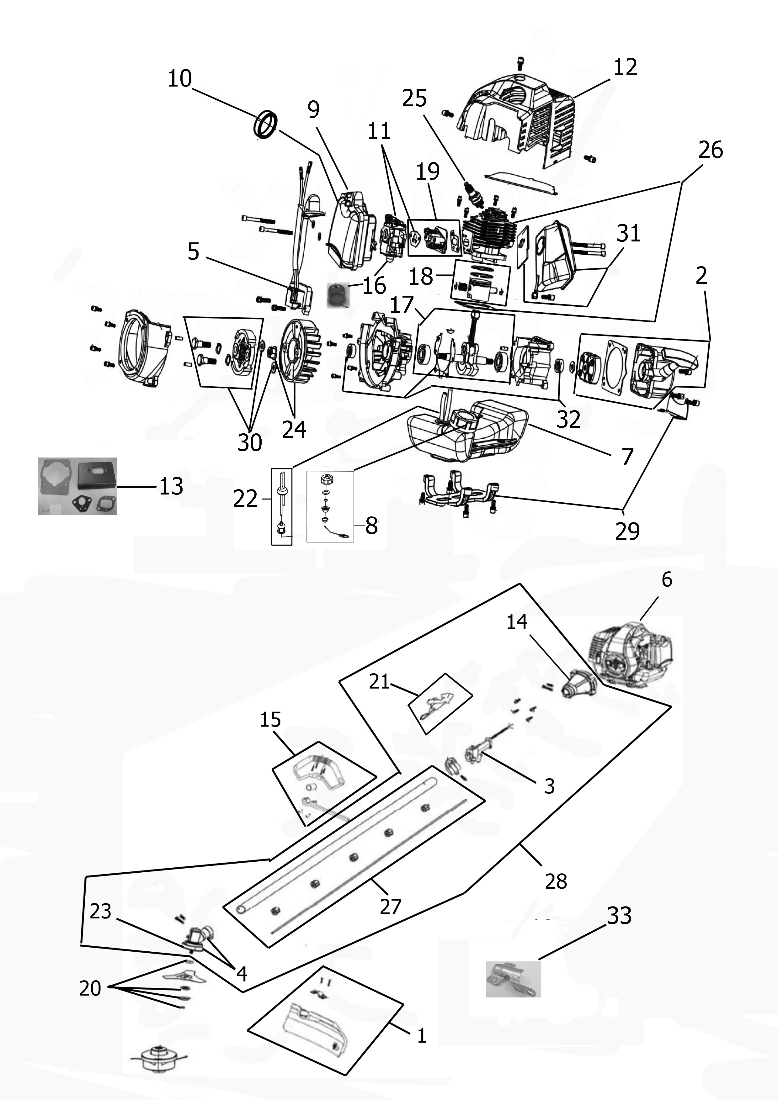 • Motore a 2 tempi catalizzato da 32,5 cc. Alimentazione a miscela 2,5%.